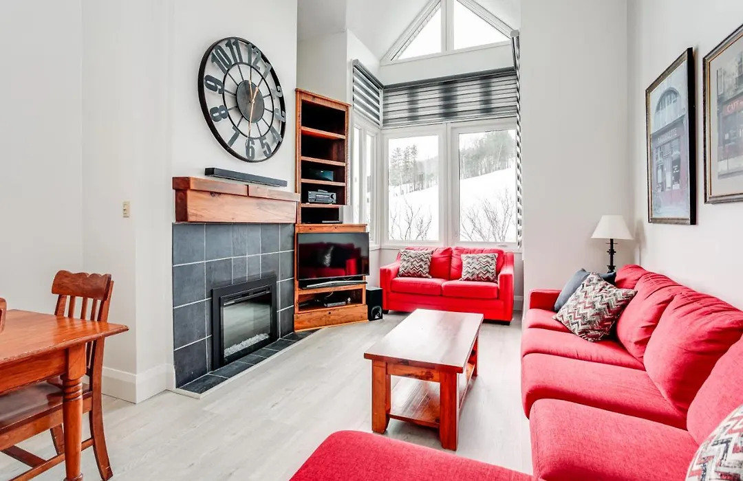 Offering views of Blue Mountains, Slope-Side Blue Mountain True Ski In/Ski Out apartment is located in Blue Mountain Ski district. This property comprises of 2 bedrooms, 2 bathrooms and a full kitchen.